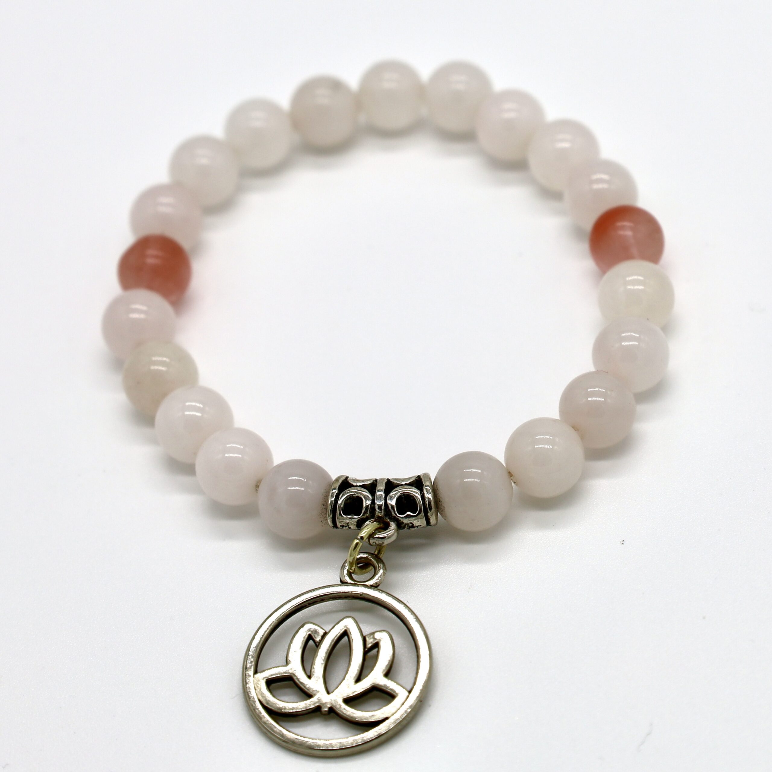 Rose Quartz and Lotus Charm. The pink lotus is a flower of purity and devotion. Devotion, and love follow you around.