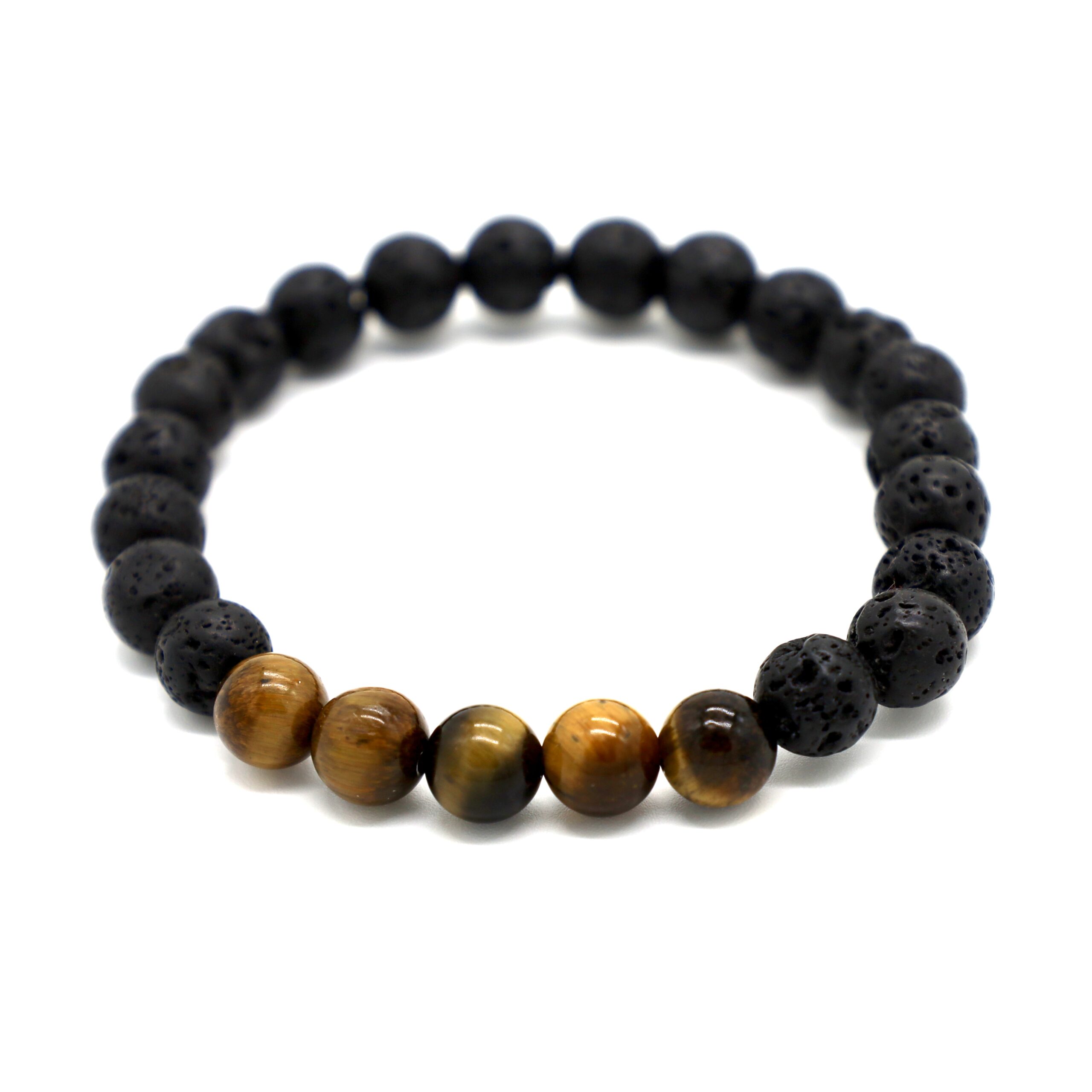 Lava Stone and Tiger Eye. Strength and grounding that can also be paired with your favorite essential oil.