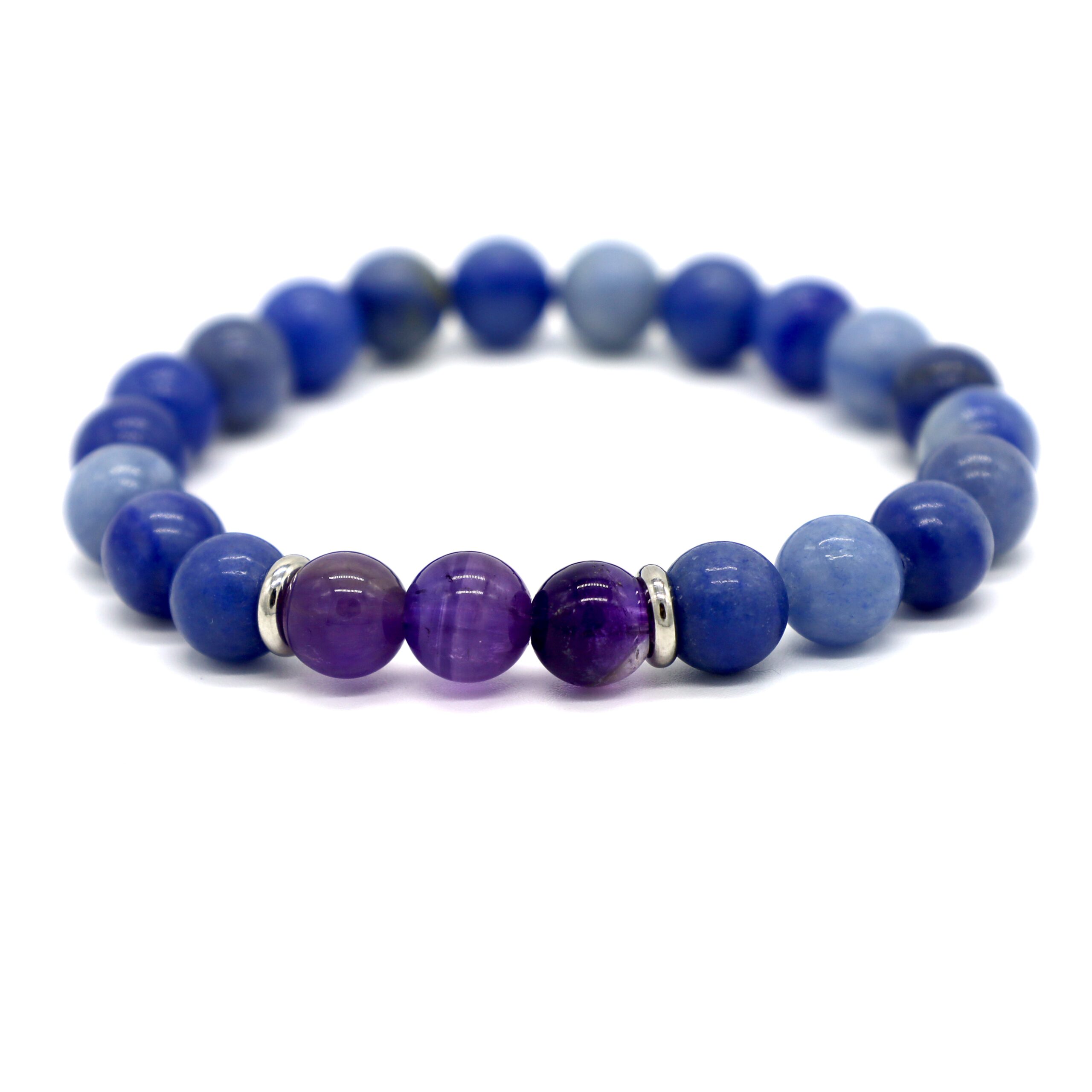 Blue Aventurine and Amethyst set with stainless steel. Breathe, heal and remain protected in life.