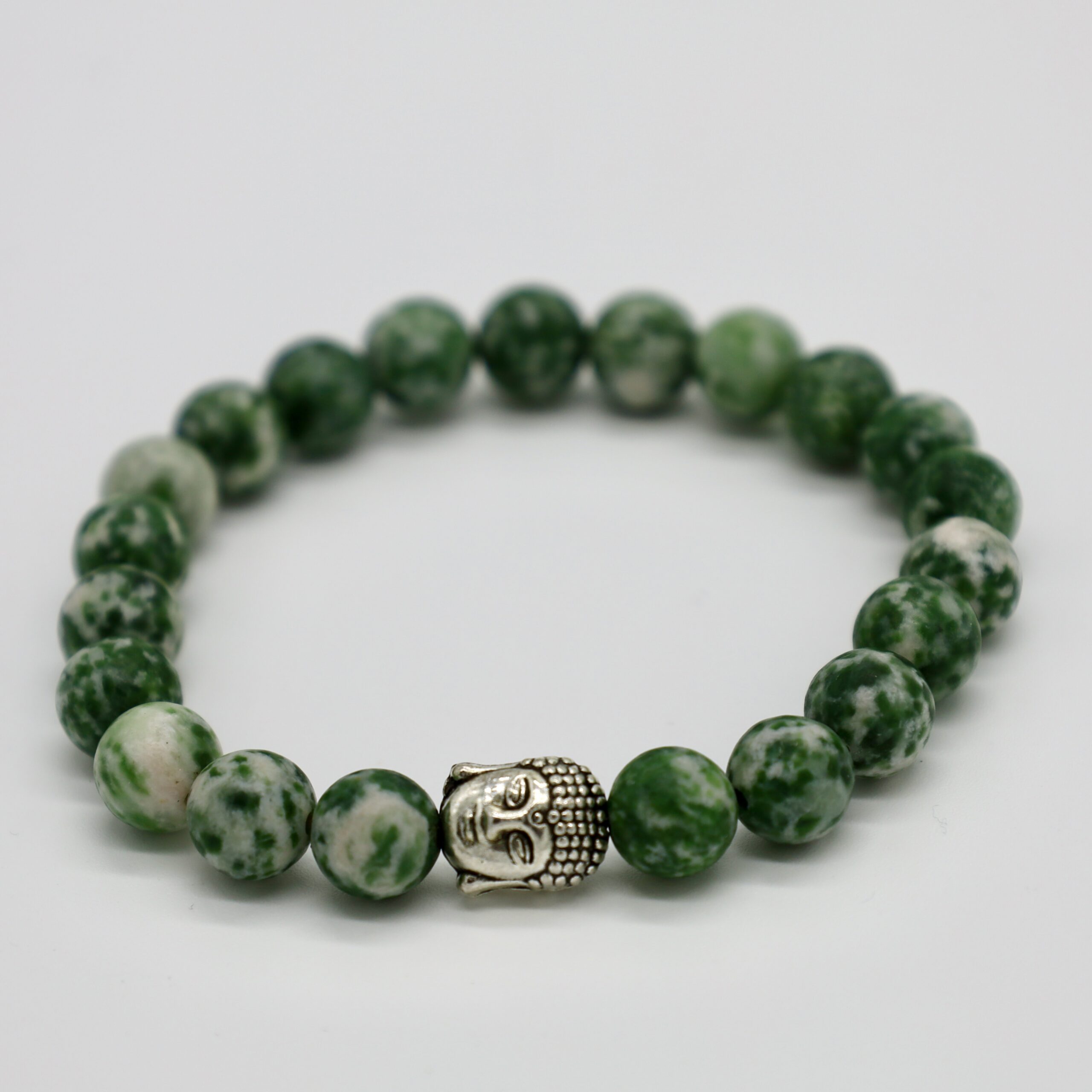 Green Dot Jasper, Buddha head. Add a little spice to your life with these funky green stones!